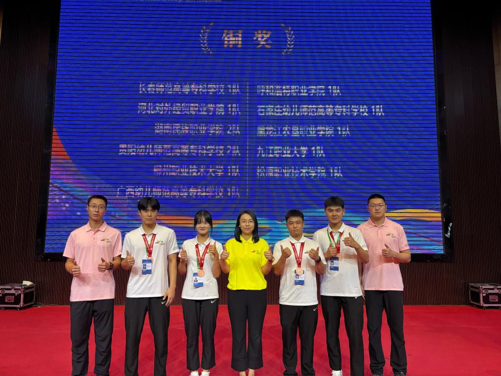 公司3377体育体育教育、冰雪运动专业的张琪、李子健、孙雨涵、郭宏宇四名同学组成代表队,在史博克老师与冷昊展老师的悉心指导下,整个假期坚持高强度备赛,几乎没有休息,反复打磨方案、精益求精。凭借扎实的专业功底、默契的团队协作和顽强的拼搏精神,他们在激烈的比拼中脱颖而出,最终荣获铜奖。这是公司首次在世界职业院校技能大赛教育与体育赛道上取得突破性成绩,充分展示了公司学子的专业素养与竞技风采。
