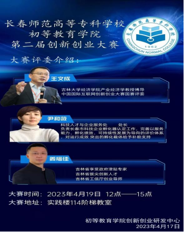 本次大赛的专家评委:吉林大学经济公司产业经济学教授博导,中国国际“互联网+”创新创业大赛国赛评委王文成;长春市科技局科技人才与企业服务处处长尹和薇;吉林省享受政府津贴专家,吉林省工信厅创业导师姜福佳。