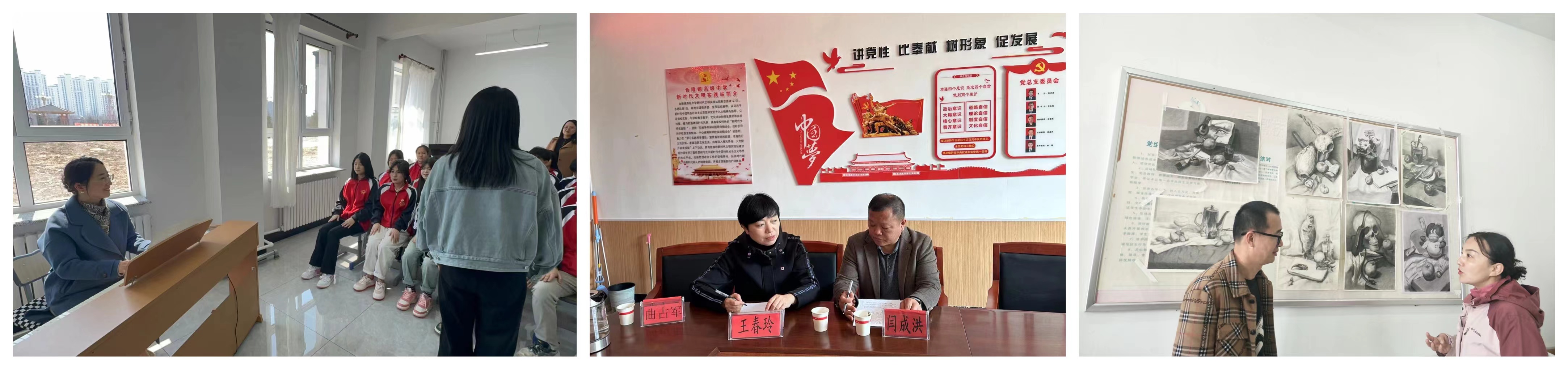 王春玲、两位教研室主任分别对接合隆高级中学相关负责领导和老师,就美术、手创、书法、音乐艺术团等美育项目的合作项目进行初步规划研讨。