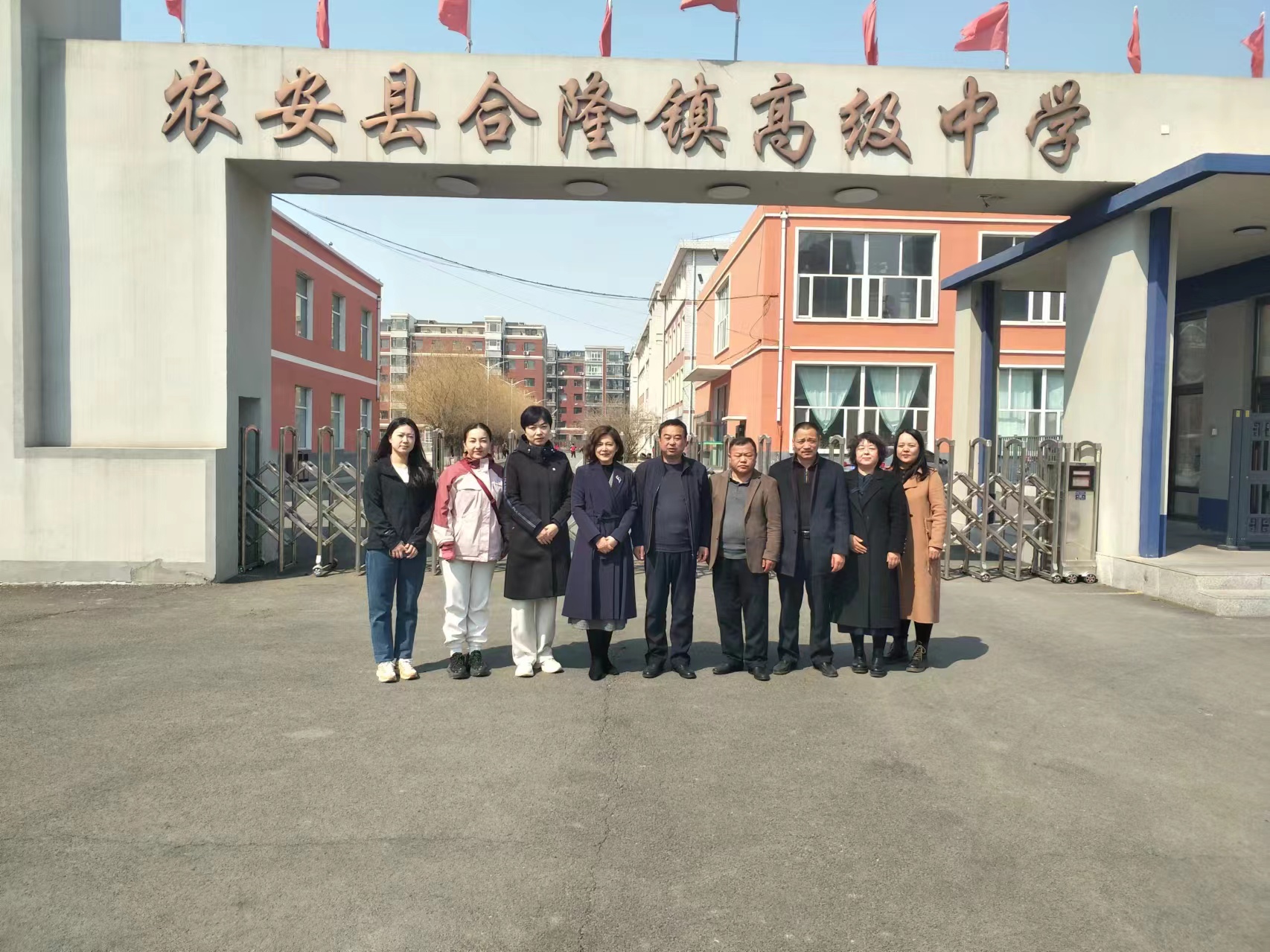 4月8日,由公司党总支书记黄瑛带队,学工科长王春玲、美术教研室主任王琪、音乐教研室主任杨轶、学工干事石佳等一行五人来到农安合隆高级中学洽谈美育送课合作事宜。合隆高级中学党总支书记张洪波带领校领导班子及专业教师热烈欢迎送课团队的到来。