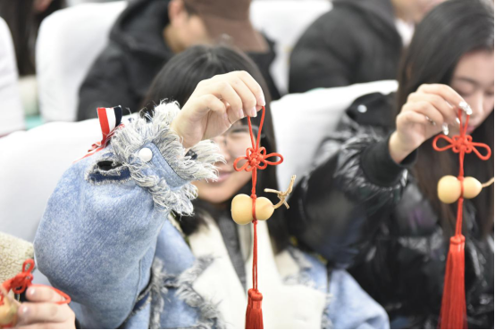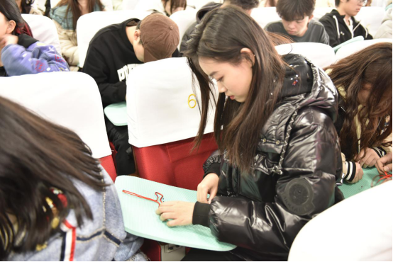 徐晓雪女士为同学们讲述了中国结的传承发展历史、进行了现场编结的演示,并指导同学们一起进行创作。公司用非遗文化与课堂教学相结合的形式,开展艺术思政教育,激发员工传承非物质文化遗产的热情,增强民族自豪,弘扬民族文化。