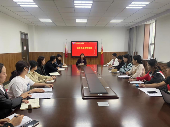 黄瑛书记对新入职的辅导员表示热烈的欢迎,对假期学工工作进行总结,对新学期学工工作进行指导。